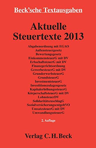 Buchtitel : Aktuelle Steuertexte 2013: Textausgabe - Rechtsstand: 15. August 2013 (Beck'sche Textausgaben)