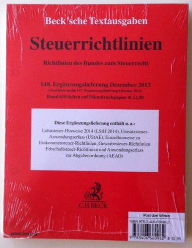 Buchtitel : Steuerrichtlinien 148. Ergänzungslieferung: Rechtsstand: 15. Dezember 2013