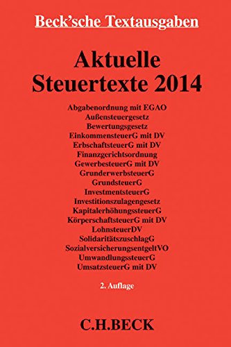 Buchtitel : Aktuelle Steuertexte 2014: Textausgabe, Rechtsstand: 1. September 2014