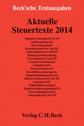 Buchtitel : Aktuelle Steuertexte 2014: Textausgabe, Rechtsstand: 1. Februar 2014